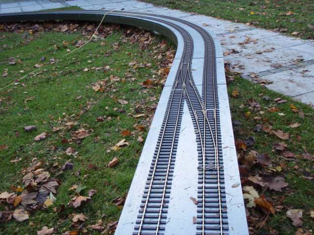 Det tager lidt tid da der er lagt et vigespor ind, og 2 blindspor, hvor lokomotiver i fremtiden kan holde mens der køres på hovedbanen. Ideen er at der er 2 pladser på vendesløjfen, hvor der kan opstartes gasdrevne lokomotiver, uden at dette har indflydelse på kørsel på banen. Nede på Layout 1 er der 1 opstartsplads til alkoholfyrede lokomotiver, samt 2-3 pladser til gas. Så der er holdeplads til 5 lokomotiver, som ikke er i drift. De anvendte skiftespor er alle af mærket "Peco".
