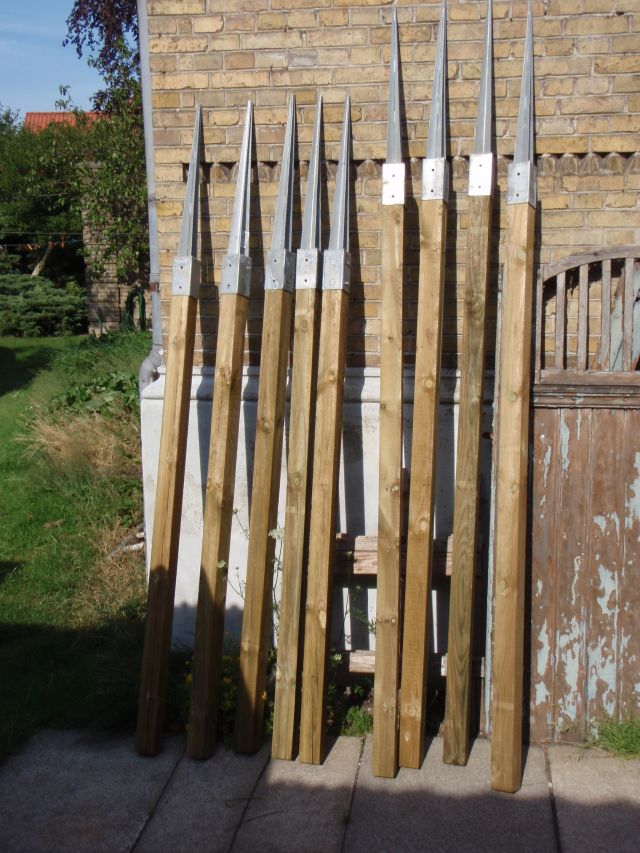 Der fremstilles stopler, heraf en del med jordspyd. Alle stolper er lavet af trykimpreneret træ 3'x3'.