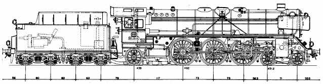 Hjul Arrangement: 4-6-2 ( 2' C1') Pacific Drivhjul: 62 mm diameter Forreste hjul: 32.2 mm diameter Bagerste hjul: 39 mm diameter