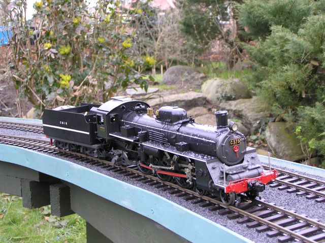 MASKINEN C57 blev egentligt købt fordi jeg (David Clement) gerne ville have min egen maskine at køre med, i stedet for altid at låne af farmand. Jeg faldt over den ved et tilfælde, og valgte på få øjeblikke at den skulle være min, selvom der på ingen måde var tale om en europæisk model. (som jeg ellers var på udkik efter) Senere har jeg fundet ud af at det ikke var så dumt endda, selvom der er tale om en maskine med små 30 år på bagen. Dette er 1979 modellen, der var produceret primært til det japanske hjemmemarked, hvorfor den har nogle lidt specielle løsninger. Historik: Denne klasse af 4-6-2 (pacific) lokomotiver blev bygget fra 1937 til 1953 som en forbedring i forhold til den tidligere klasse C55 lokomotiver. De var udstyret med boxpok hjul og et kedeltrykpå ca 235 pund/kubikfod. De var meget populære blandt de japanske besætninger, da de kunne forvaltes og vedligeholdes af "små mænd". (Ansatte i det japanske jernbaneselskab haved på det tidspunkt en noget mindre statur). Prøv at se på tegningen. Førerhuset er temmelig lavt. I alt 201 af disse elegante lokomotiver trak ekspresstogene på de vigtigste strækninger i hele det japanske jernbanenet. På grund af deres elegante proportioner - en lang, lav slyngede slank kedel og høje hjul - fik de tilnavnet "den noble Dame" (Noble Lady) og er kendt under denne betegnelse hos jernbanefans verden over. Siden 1979 er en del "Noble Ladies" blevet restaureret og kører regelmæssigt på lokale linjer i Japan, til glæde for jernbanefans. Den sidste C57 blev bygget til Taiwan i af Hitachi i 1953. Aster udgave er et lokomotiv fra denne klasse, som det ville have set ud i perioden mellem 1937 og 1940. Tekniske detailjer: Det er Asters første model med en røg-rørskeddel. Det vil sige meget stor varmflade, og hurtig drifttid. Bekostningen er at der kun er lidt vand i keddlen. Aster er hat i flere år haft planer om at producere en universiel akselpumpe, som kan anvendes til modellen. Når den kommer vil den helt sikkert blive installeret. Et alternativ er dog en akselpumpe fra Markus Neeser, som jeg (efterår 2009) har fået hjem til Br01 Den senere udgave fra 1999 har akselpumpen installeret fra begyndelsen. Ellers er der - umiddelbart - kun få forskelle mellem de 2 serier, selvom der er 20 år mellem dem. Det er på alle måder en fantastisk maskine. Den er sort. Uden en masse fine "dimser", som let falder af. Teknisk meget avanceret med sin keddel og superheater. Eneste men er at forvogene (de forreste 4 hjul" er meget følsom. Den skal have som minimum have en 3 meters radius for at kunne dreje. Ellers er modellen en sikker og "lynhurtig" starter, og har aldrig svigtet. Dens lave design er sikkert årsagen til at den er i fremstillet i det mystiske 1:30 forhold. Jeg synes nu ikke man lægger mærke til at der ikke er tale om en "ægte" 1:32 maskine. Problemerne med forvognen kan skyldes at denne model - ligesom de første Aster lokomotiver - er konstrueret med en anden akselafstand end idag, og derfor har 41 mm mellem flangerne, mod 39-40 mm på de nye modeller. Dette sætter nogle naturlige begrænsninger på hvilke kurver maskinen kan klare. Forvognen er ligeledes speciel idet den er meget "ledløs", noget som er ret gennemgående i designet af boggies/trucks til lokomotiver og vogne.